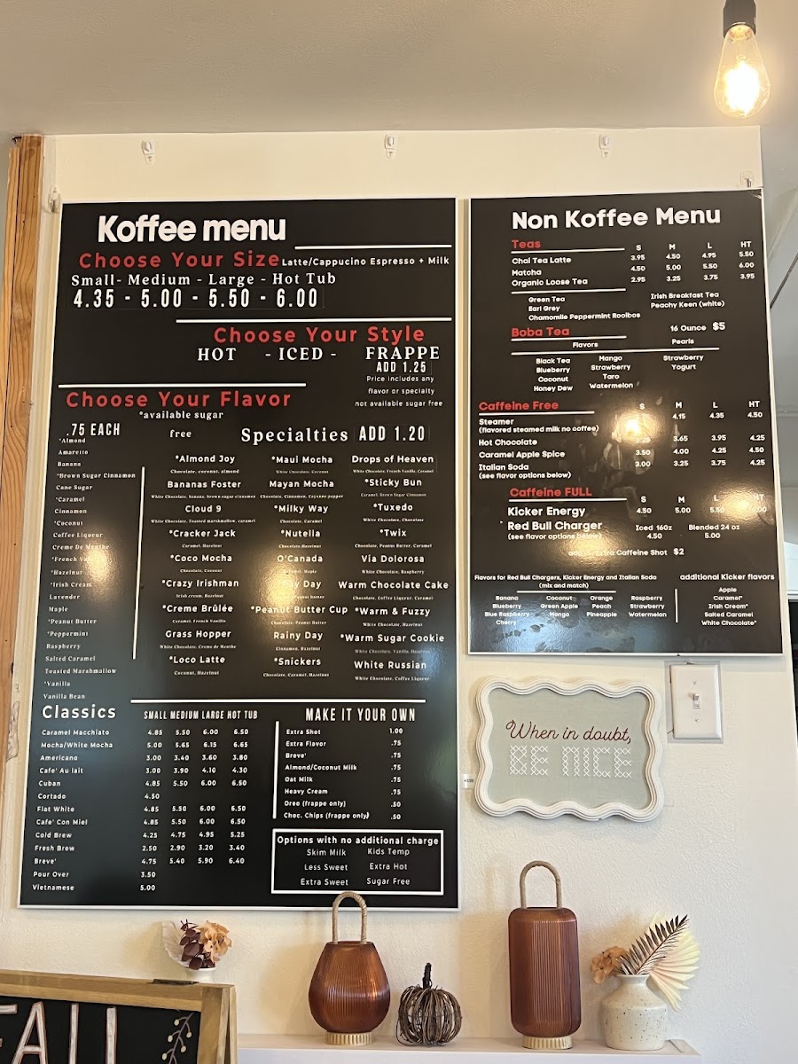 Koffee With a Kause Menu